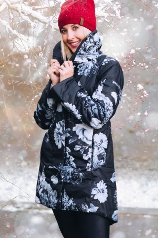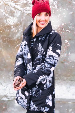 I love my coat! I live in an area that’s often cold and windy and this coat keeps me toasty and looking chic. It’s been so thoughtfully designed, starting from being reversible when I need just basic black. But the floral side is really the star!